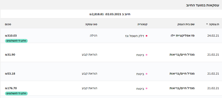 נכנסים לפירוט החיובים באתר או באפליקציה. ל-5 העסקאות הגדולות שבצעתם תראו את הכפתור חלוקה כבר בפירוט החיובים. זה לא אומר שאי אפשר לחלק לתשלומים עסקאות נוספות.