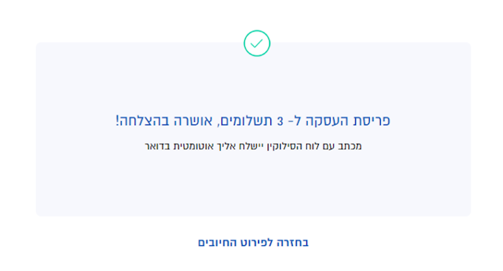 3. מאשרים פרטים, וזהו (אפשר גם להתחרט ולשנות את מספר התשלומים), אפשר לראות את לוח התשלומים המלא:
